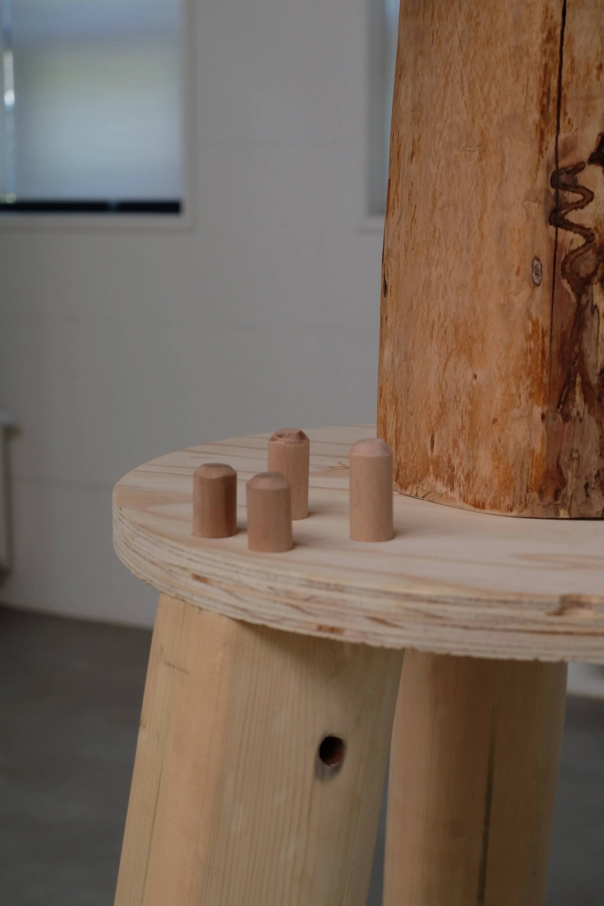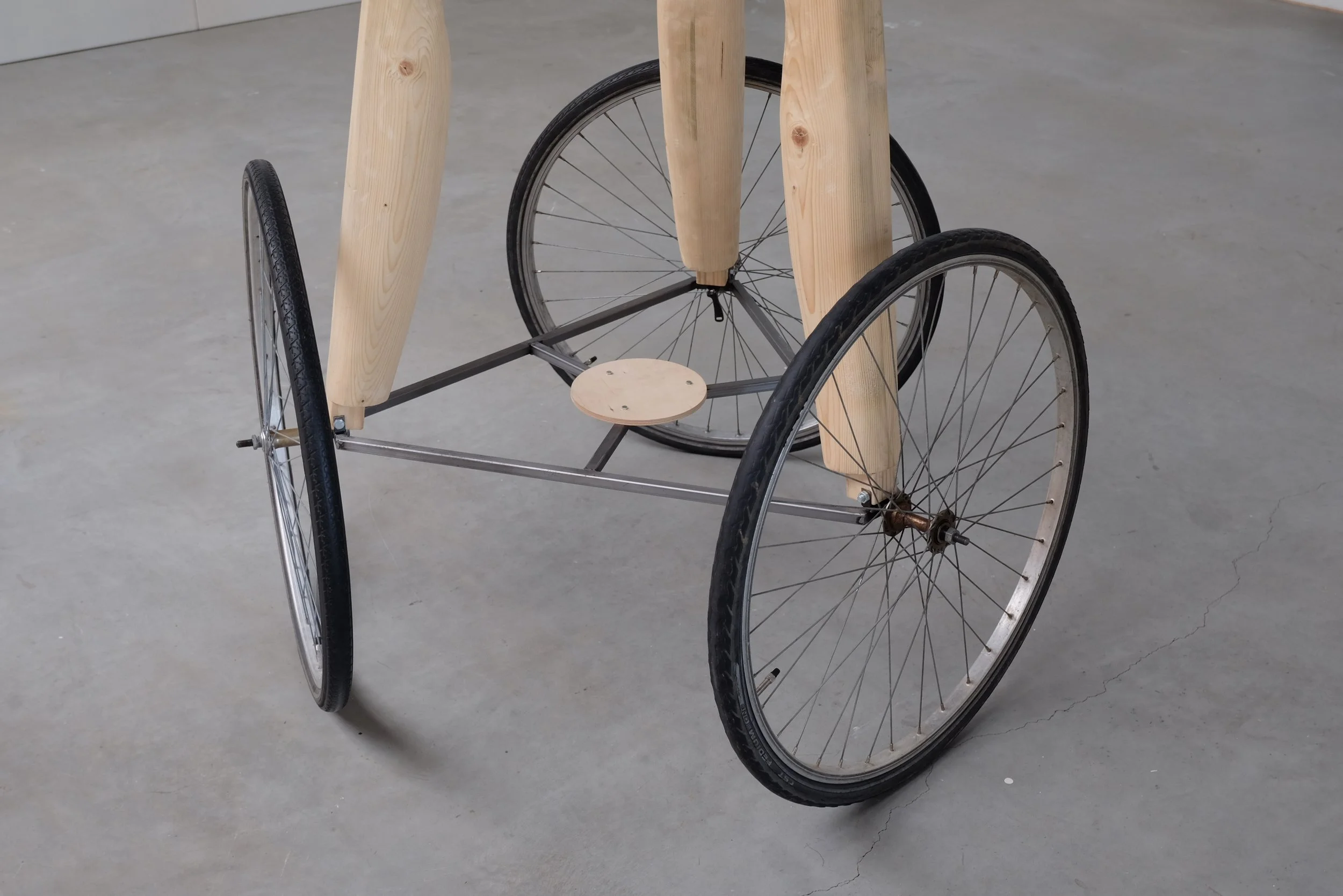 Wood, found objects, metal.