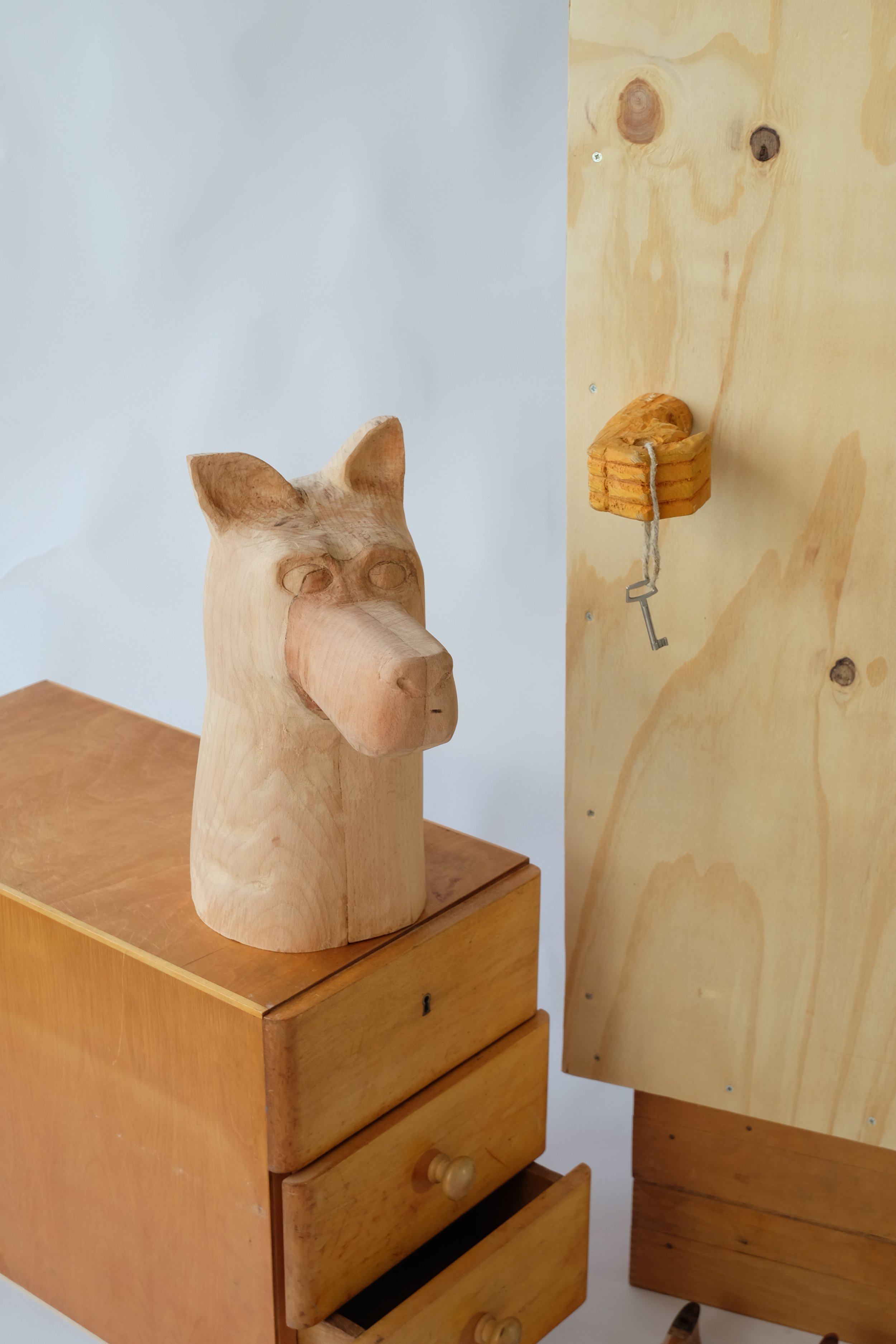 Wood, found objects, mirror.